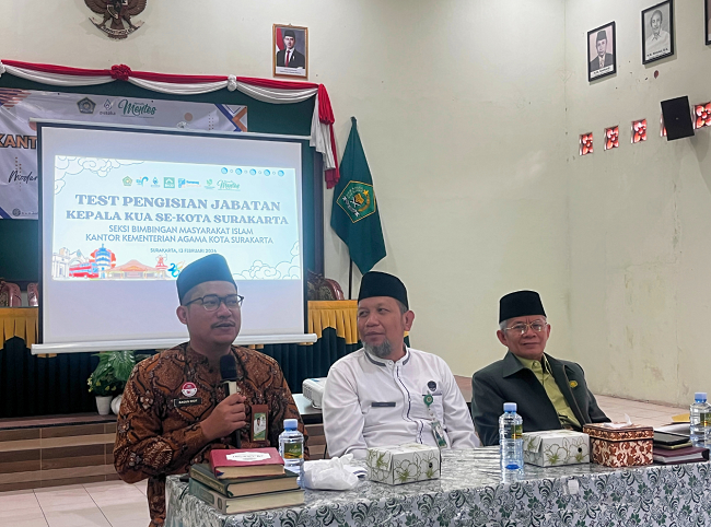 Kota Surakarta (Humas) – Kantor Kementerian Agama Kota Surakarta melalui Seksi Bimbingan Masyarakat Islam (Bimas Islam) pada hari Jum’at (13/2/2026) menggelar Tes Pengisian Jabatan Kepala Kantor Urusan Agama (KUA) Kota Surakarta bertempat di Aula R. Oesman Pudjotomo. Prosesi seleksi ini merupakan bagian dari komitmen Kemenag dalam memastikan kepemimpinan di lembaga layanan keagamaan tingkat kecamatan diisi oleh figur kompeten dan sesuai dengan regulasi terbaru. Langkah tersebut sekaligus menjadi wujud adanya transparansi dan akuntabilitas dalam manajemen ASN di lingkungan Kemenag Kota Surakarta.