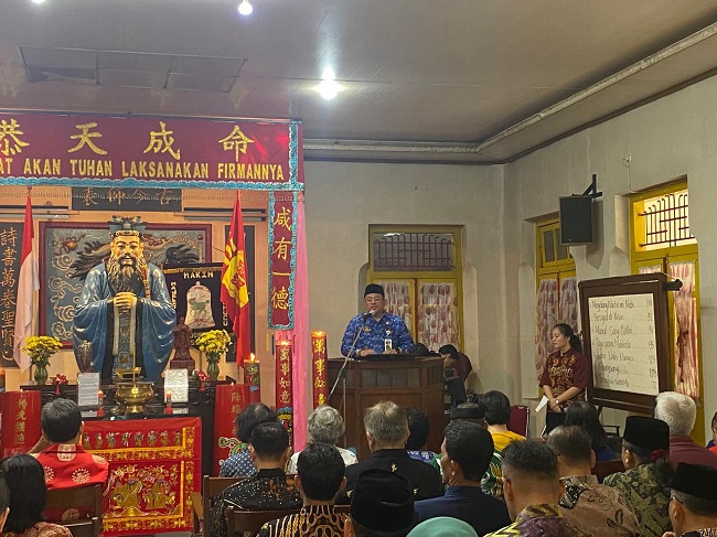 Kota Surakarta (Humas) – Komitmen Aparatur Sipil Negara (ASN) di tingkat daerah yaitu Kota Surakarta dalam membangun integritas bangsa melalui pendekatan agama, pada Selasa (28/10/2025) kembali ditunjukkan melalui kolaborasi antara Komisi Pemberantasan Korupsi (KPK) RI, Kantor Kementerian Agama (Kankemenag) Kota Surakarta, dan Majelis Agama Khonghucu Indonesia (MAKIN) Solo melalui kegiatan Safari Keagamaan Anti Korupsi dari Perspektif Kebajikan Sebagai Landasan Anti Korupsi. Bertempat di Lithang Gerbang Kebajikan Solo hari ini, Safari Keagamaan Anti Korupsi berhasil menyatukan ratusan peserta dari berbagai latar belakang dalam satu misi mulia, diantaranya umat Khonghucu, organisasi keagamaan, tokoh masyarakat pemangku kepentingan beserta jajaran ASN Kankemenag Kota Surakarta, khususnya Kelompok Kerja (Pokja) Area 5 Tim Penilaian Mandiri Pembangunan Zona Integritas (PMPZI) untuk menguatkan tugas pengawasan dan pengendalian.