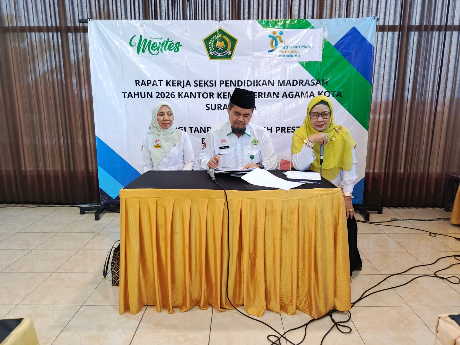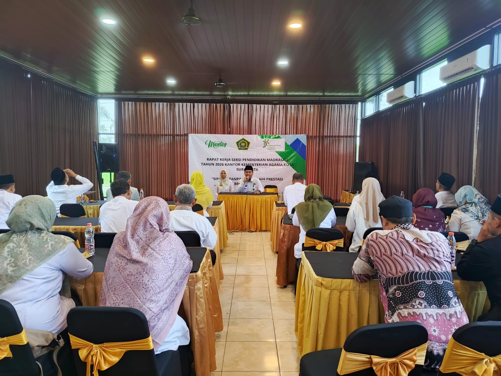 Surakarta (Humas) – Dalam rangka mengevaluasi program kerja di jajaran Seksi Pendidikan Madrasah Kantor Kementerian Agama Kota Surakarta, dan menyusun rencana Tahun 2026, perlu dilaksanakan Rapat Kerja Tahunan (10/02/2026). Kegiatan diikuti oleh Pengawas Madrasah, dan Kepala Madrasah Negeri dan Swasta se-Surakarta.