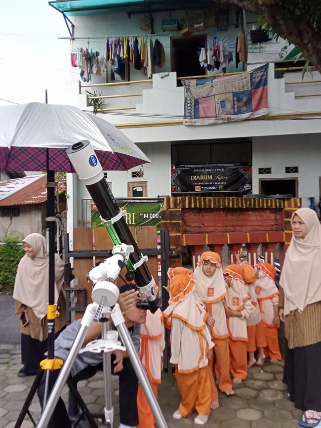 Kegiatan diawali dengan pembukaan dan pengenalan singkat mengenai luar angkasa dan matahari yang disampaikan menggunakan bahasa sederhana agar mudah dipahami oleh anak-anak. Selanjutnya, anak-anak mengikuti agenda utama berupa meneropong matahari dengan pendampingan langsung dari tim Casamo Assalaam menggunakan alat khusus yang aman.